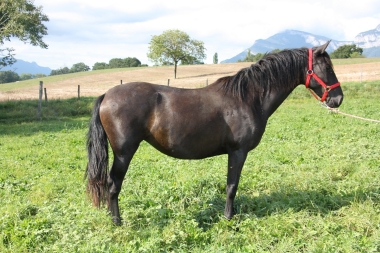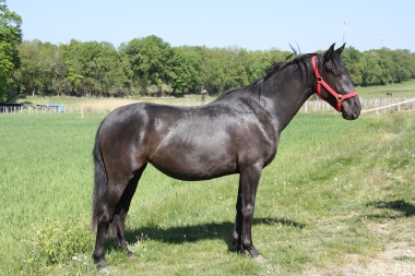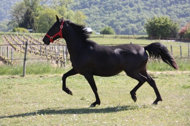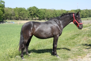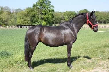 Belle pouliche noire de 3 ans, avec une morphologie harmonieuse, 3 bonnes allures. Très bien manipulée, monte en van, bon caractère. Conviendrait pour loisirs, spectacle, dressage ou poulinière. VENDUE