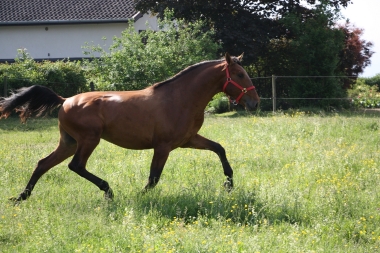 Poulain de 3 ans toisant 1m71. Modèle de gamme pour reproduction ou dressage. Bien manipulé, bon caractère, monte en van. En cours de débourrage.