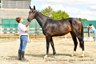 Pouliche très chic possédant un joli modèle, beaucoup de sang, une belle aptitude à l'obstacle et une très bonne locomotion.
